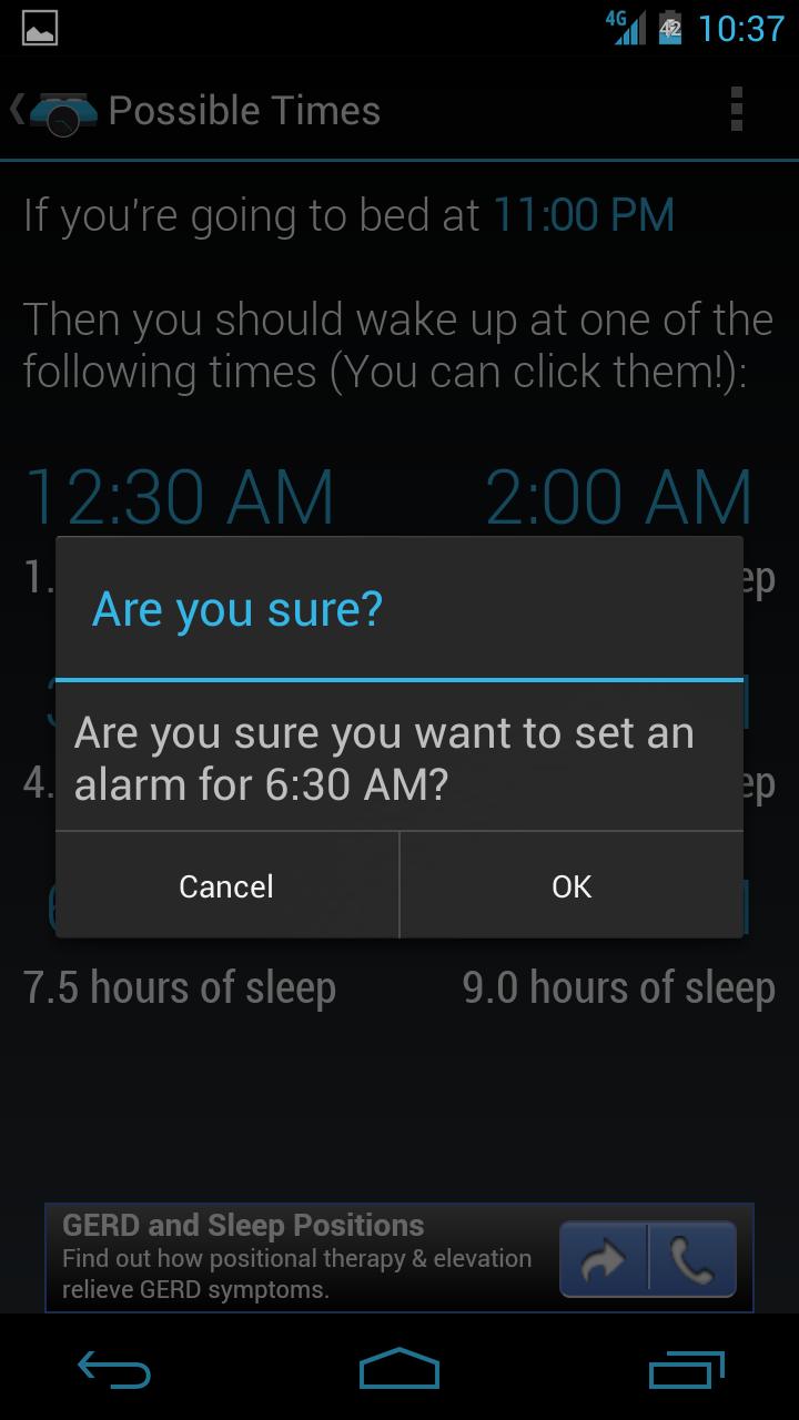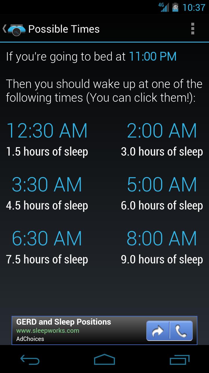With 90night you can calculate the times you can wake up if you know when you are going to sleep or you can calculate the times you can go to sleep if you know when you are waking up. It also provides you buttons you can press that can set an alarm for you using your preferred alarm app.