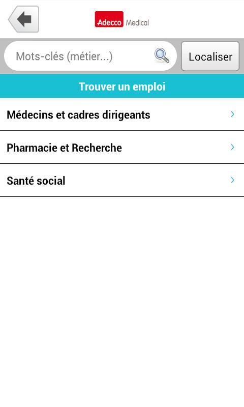 - Contact and geolocalize the closest Adecco Medical Agency thanks to your Android application.