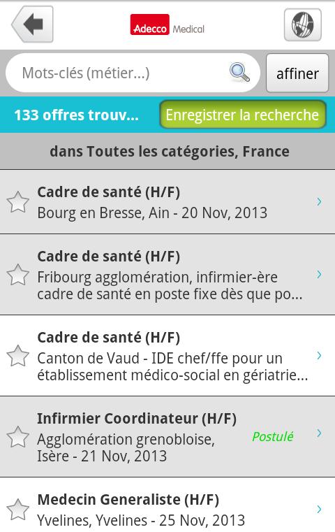 - Apply directly from your mobile, using the access codes of your adeccomedical.fr account.