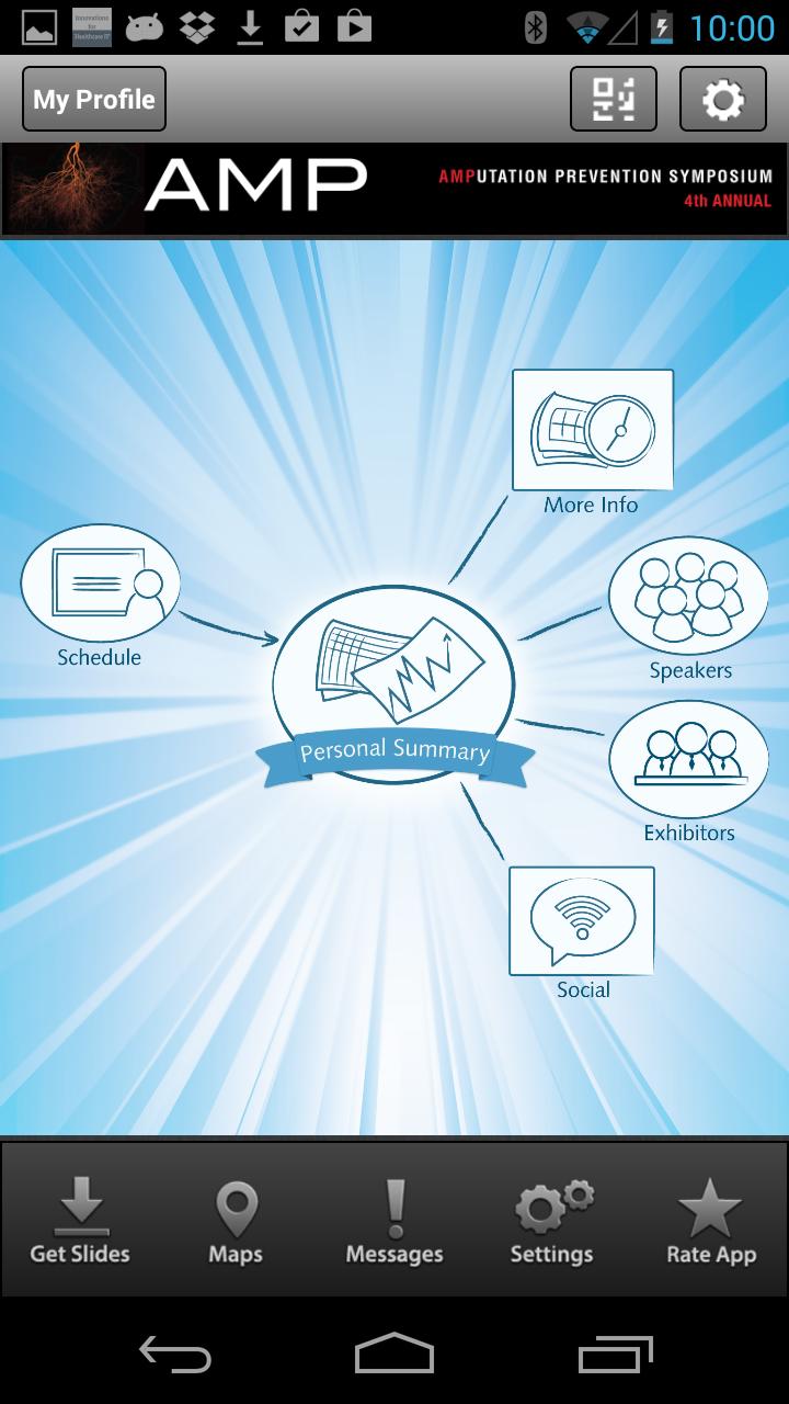 The AMP 2014 mobile application allows you to view abstracts, presentations, speakers, and exhibitors from the symposium. Users can take notes adjacent available presentation slides and draw directly on slides inside the app. Note-taking is also available in the exhibitor module.