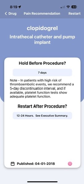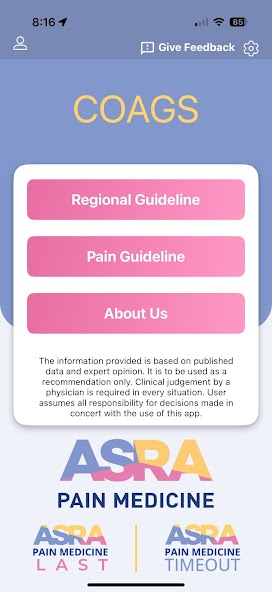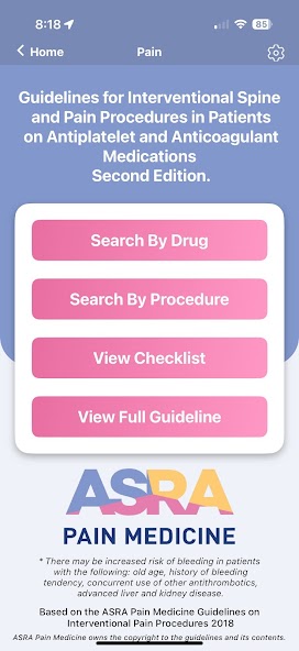 subscription-based app is $6.99/annually or free with ASRA Pain Medicine membership. The app