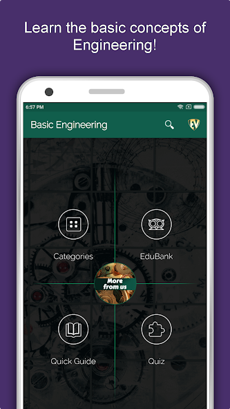 With more than 11000 Engineering Terms and lots of Engineering Equations, Engineering Formulas and Engineering Facts, this Engineering App will sure cement your basics of engineering. For quick learning, this Basic Engineering Dictionary has a Quick Guide of pictorial formulas and equations. Basic Engineering App is full of numerous Engineering Quizzes to brush up your knowledge and challenge your learning.