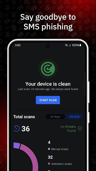 ✔ Scam Alert - Keeps you safe from phishing, scams, and fraud by scanning suspicious links in texts, messaging apps, and notifications.