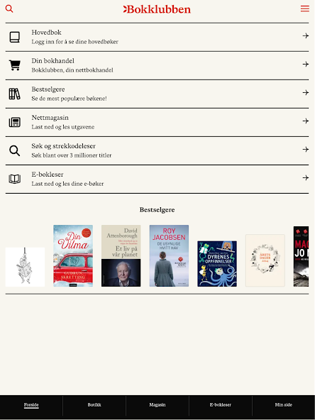 In the Book Club app you can find your current general books, and if you want to cancel you can do so right in the app. Your eBooks can be read right in the app. You will also find all editions of the Book Club's online magazine. And if you are wondering what a book costs at the Book Club you can search for it or photograph the barcode to check the price. If you would like suggestions for books especially recommended for you, click on Recommendations!