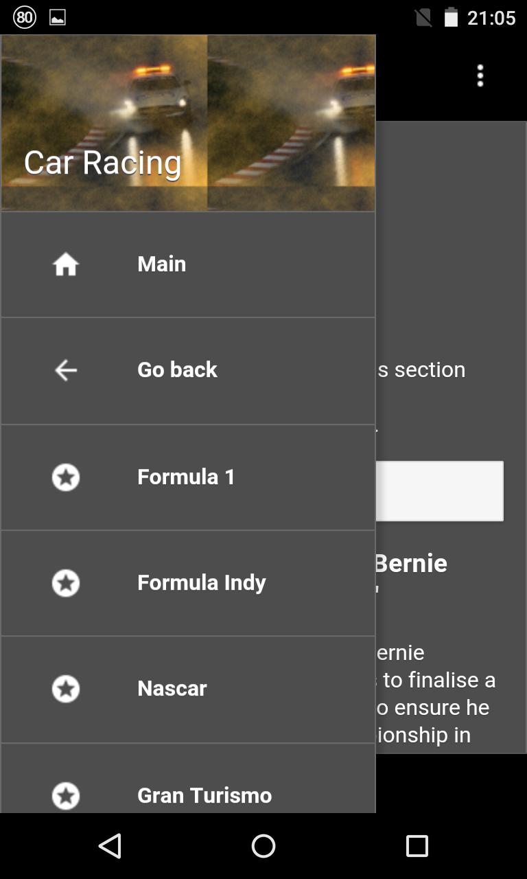 Here you will find information about general car race, from several major sources of world sports journalism so, instead of having several apps from different news sources, with Racing App you can keep everything in one app only. But we go way beyond just news. Grid formation, hottest lap, best strategies with the pit stop, silly season, choice of tires, new rules and much, much more.