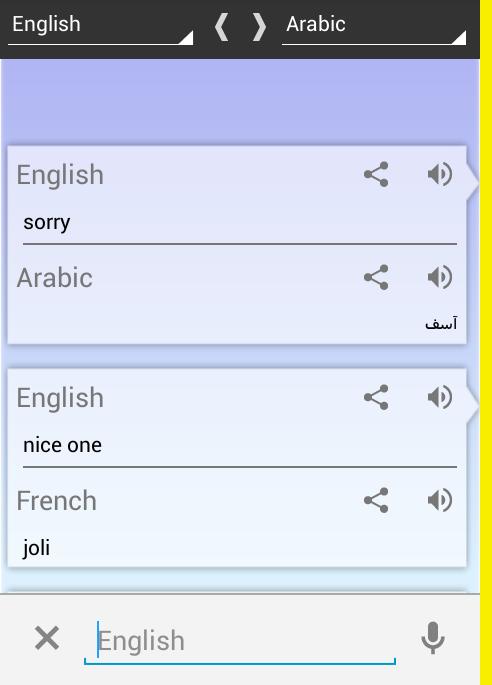 The possibility of sending words translated through the means of social communication with friends or relatives