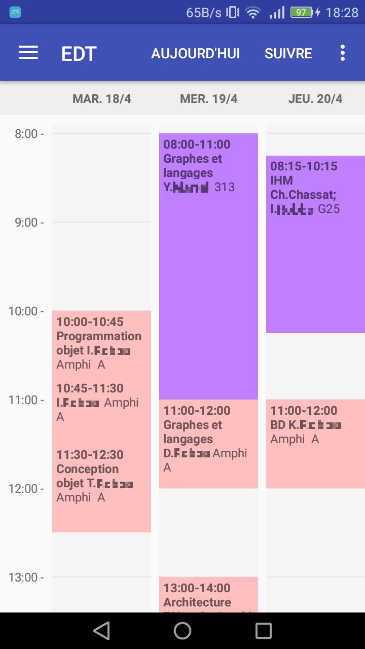 EDTVelizy is a mobile application to access the schedule of the IUT of Vélizy directly from their phone.