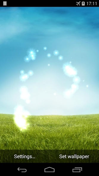 Greenfield Live Wallpaper, floating balloons with light particles and clouds.