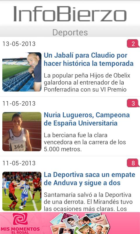 Bierzo Digital newspaper with the possibility of reading all categorized news (sports, culture, last hour, videos) in addition to proposing your own topics from the "Participate" section.