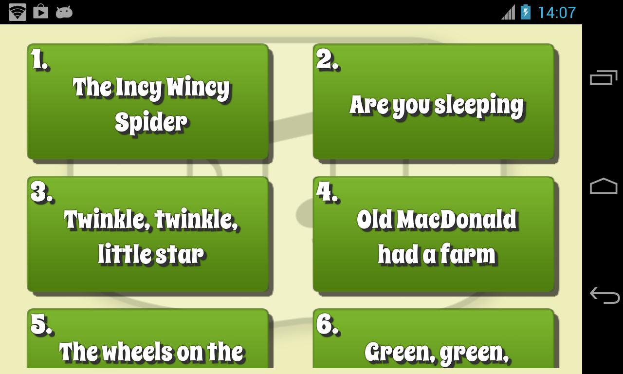 Kids Karaoke, a multilingual sing along karaoke app for little ones as well as grown ups who want to learn nursery rhymes in their own, or perhaps in several other, languages. Sing along with, and learn the words of, the most internationally known nursery rhymes out there, switch languages or just have fun together with the little ones singing and following the lyrics of the songs. All nursery rhymes are internationally known children songs easy to learn and pick up the words from. Have fun and learn these timeless nursery rhymes through this app.