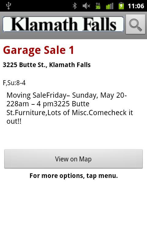 Hunting down and mapping out routes for garage sales can be time consuming and frustrating: either outdated information, or no local listings. But with the Garage Sales application from the Klamath Falls Herald & News, you can save time by searching current, local ads on the go. It’s the easiest and most reliable way to find garage sales near you.