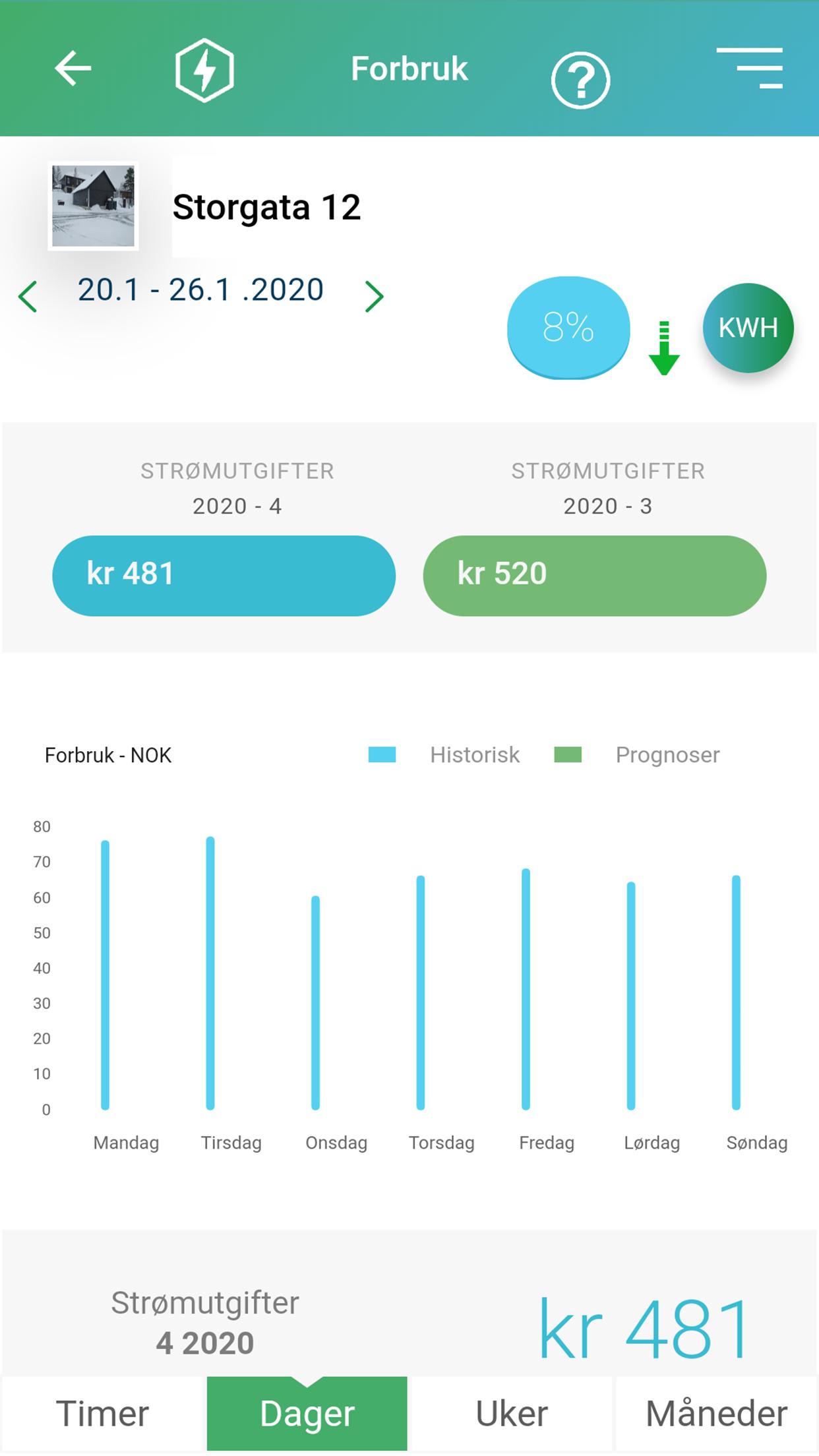 With the app you can quickly get an overview of your power consumption. An especially useful feature is knowing how much power you will be using today and tomorrow. If you want to save money then you can just turn down the heat in the rooms where you do not stay.