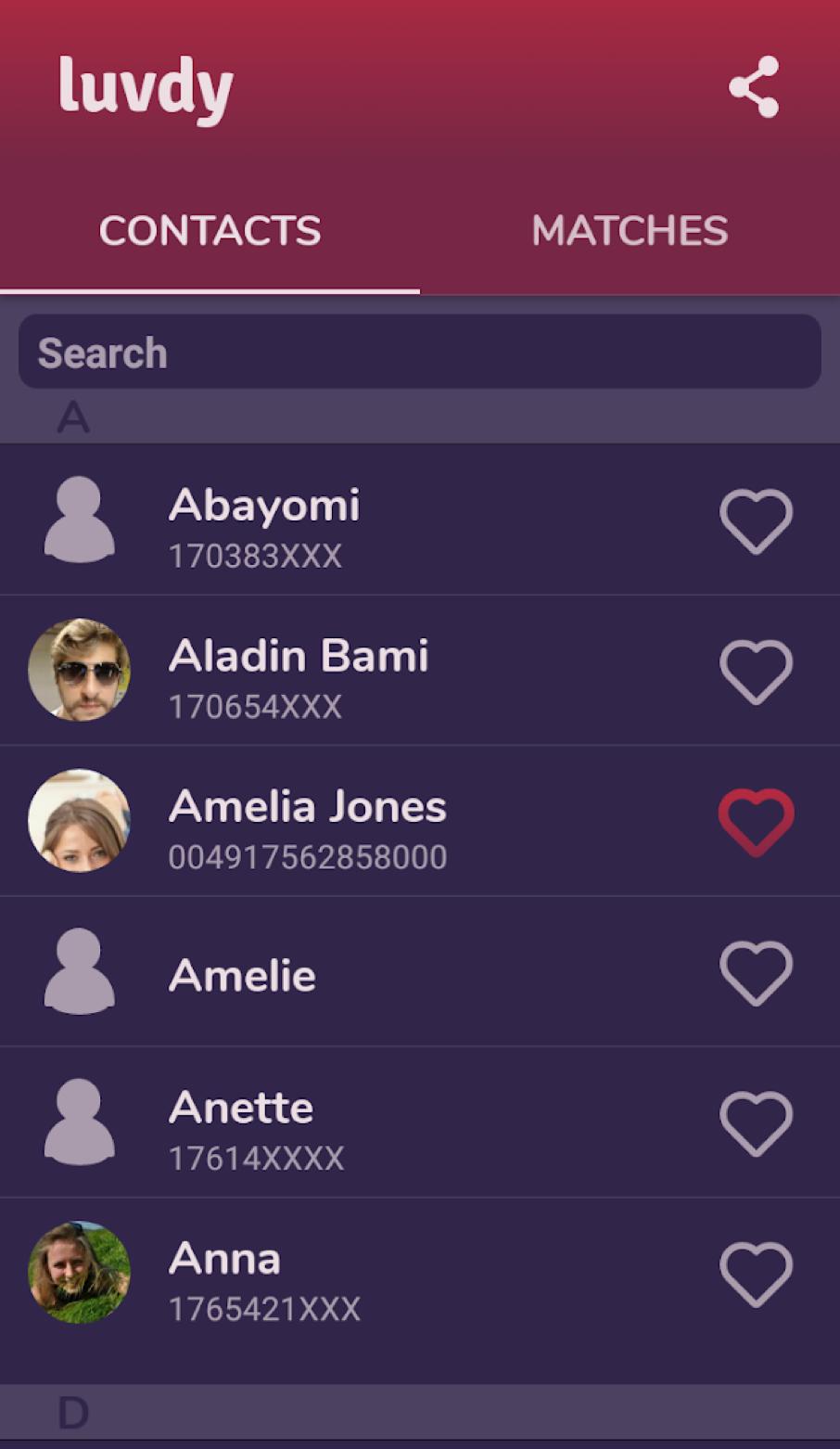 luvdy is absolutely easy to use and only requires only access to your contact list. Start now and see which of your contacts loves you. Enjoy a new dating experience with your friends with absolute anonymity. You have nothing to lose and so much to gain!