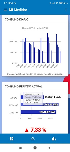 - Know your Consumption in kWh so far this month, and compare it with last month's consumption, and a projected one for the end of the current month.