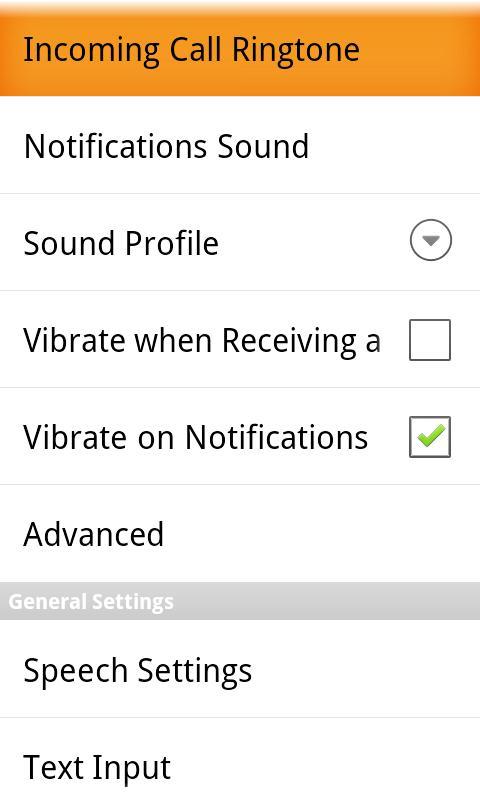 - Settings: Change the call tone. Adjust notifications (vibration or audio). Configure keyboard echo, score, tone, voice speed, etc. level etc.