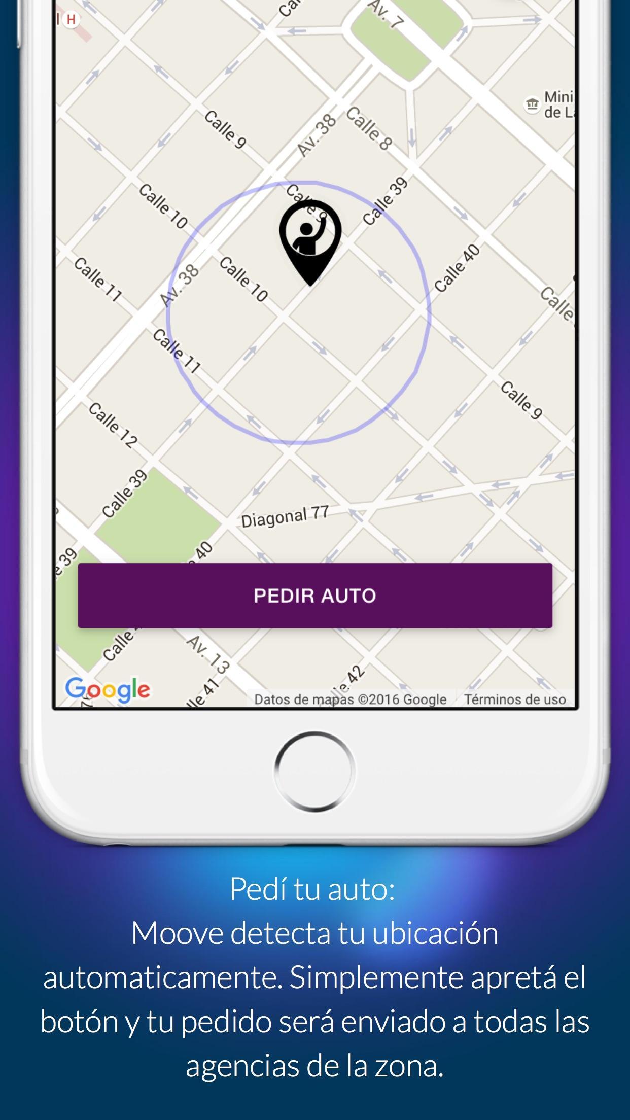 moove detects your location automatically. Simply press the button and your order will be sent to all agencies in the area.