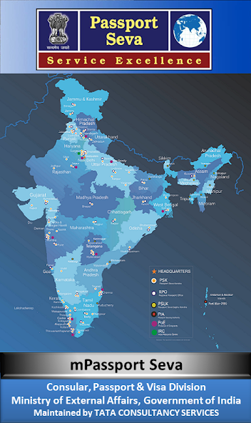 Passport Seva Project, being executed by PSP Division of the Ministry of External Affairs (MEA), Government of India, aims at providing all the Passport-related services to the Indian Citizens in a speedy, convenient and transparent manner. This is one of the largest projects of the Government of India under the National e-Governance Plan (NeGP) being executed in public-private-partnership mode with Tata Consultancy Services (TCS) as the private partner. The project is already operational and servicing citizens through 93 Passport Seva Kendras and 412 Post Office Passport Seva Kendras across India.