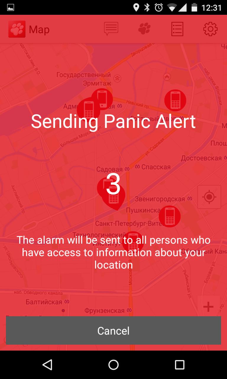 NIKA GLONASS application user can submit an alarm to loved ones in the event of an emergency.
