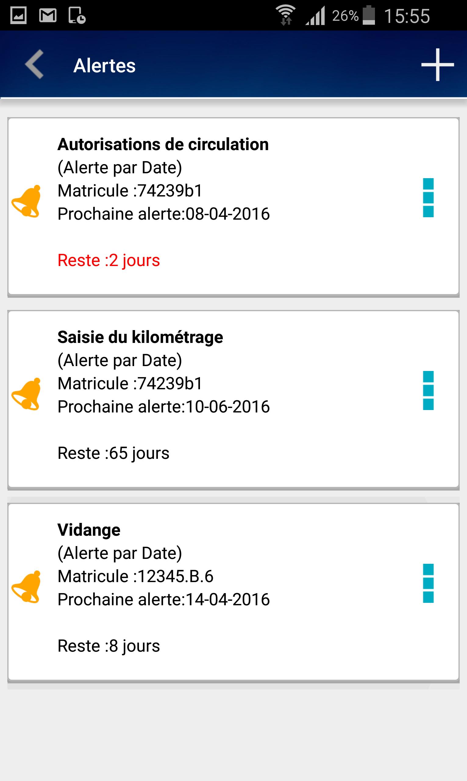- Thanks to our notification system, it is possible to plan alerts in advance and manage their frequencies (per day, month, year) to set up reminders that will open directly in the application. You will therefore never forget a emptying, insurance or even a technical visit.