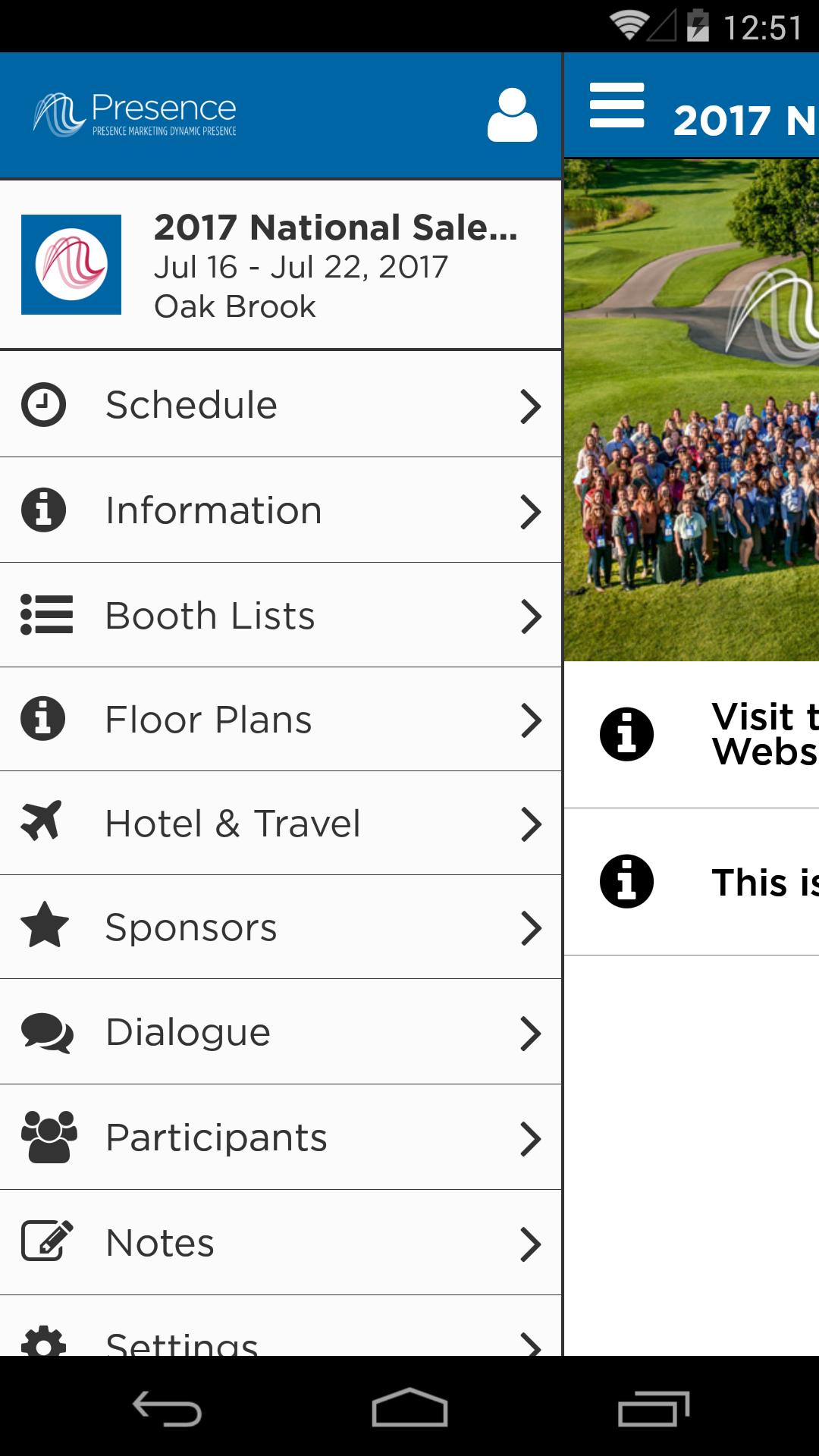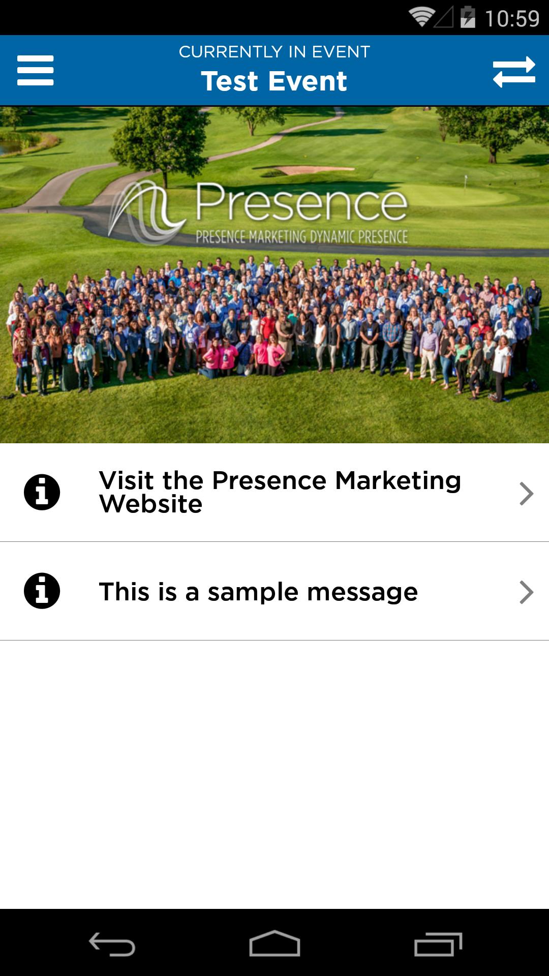 The Presence Marketing app is a mobile event app for Presence Marketing Dynamic Presence events.