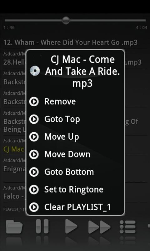 * Long-click on the music name show popup menu.
