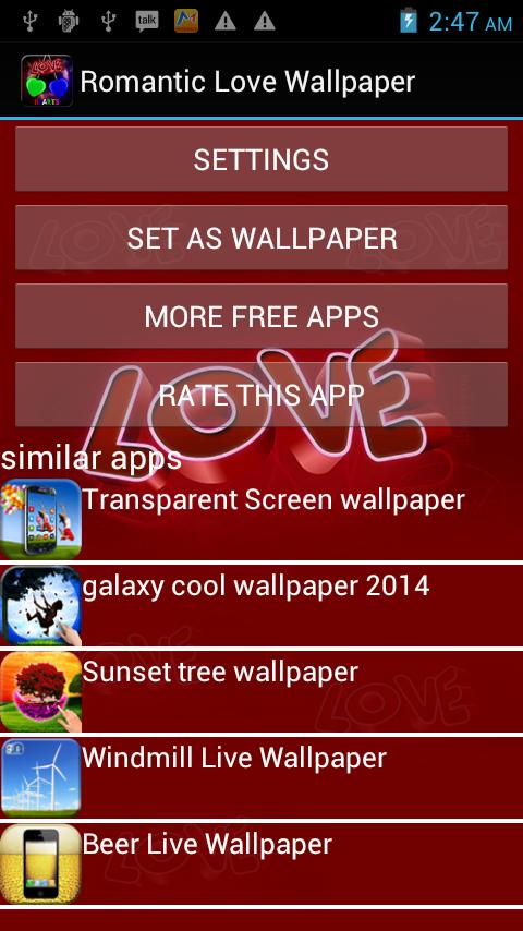 Go to Home -> Menu -> Wallpapers -> Live Wallpapers -> Select "Romantic love wallpaper" by scrolling down the list and set wallpaper.