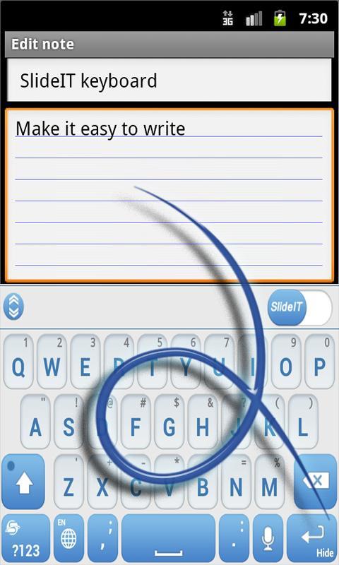 This is a skin addon to change the look of the SlideIT keyboard to have Blue and White colors with soft edges.