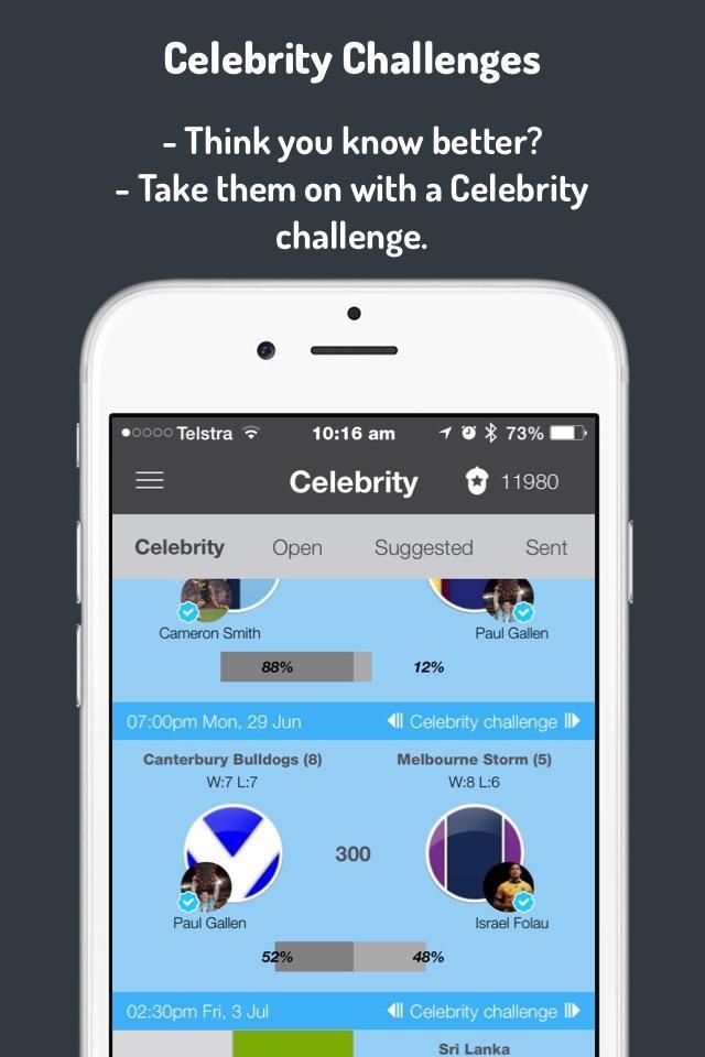 Challenge your favourite Sports Stars @ Sportnuts. The Game built for current professional Sports Stars & their fans. Featured sports include NRL, AFL, Super Rugby, A League Soccer, International Cricket, NBA, NFL, MLB, NHL, English Premier League, and UEFA Champions League. Take Them On @ Sportnuts
