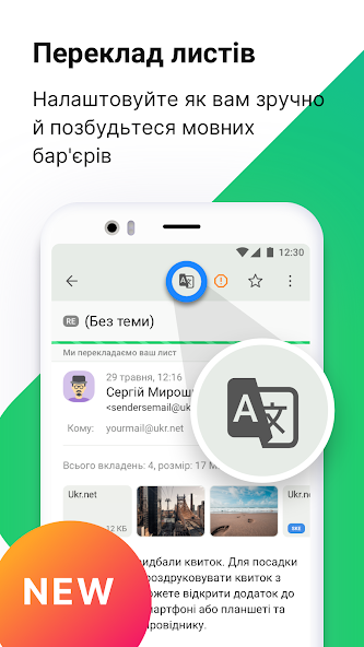 Wise usage of mobile data and device storage. The @UKR.NET Mail App is designed to minimize storage and data usage.