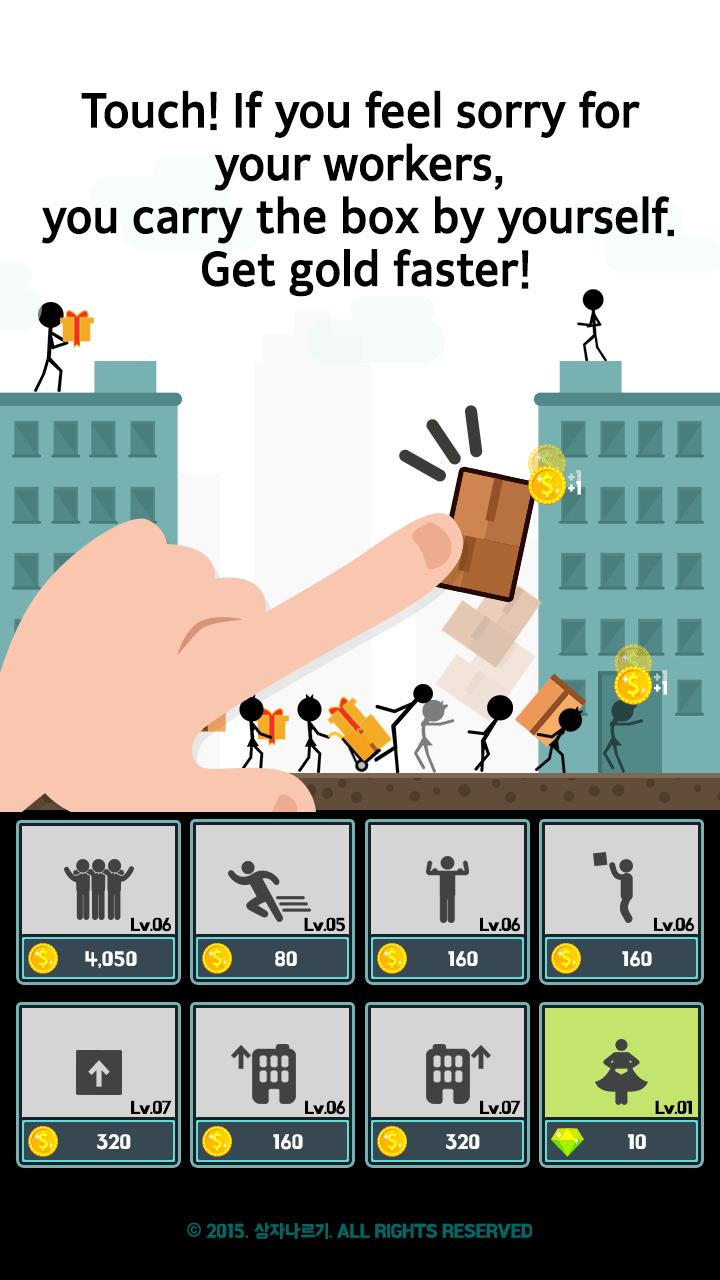 يلمس! إذا كنت تشعر بالأسف على عمالك ، فأنت تحمل الصندوق بمفردك. احصل على الذهب بشكل أسرع!