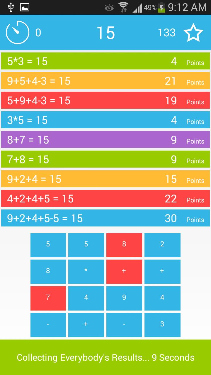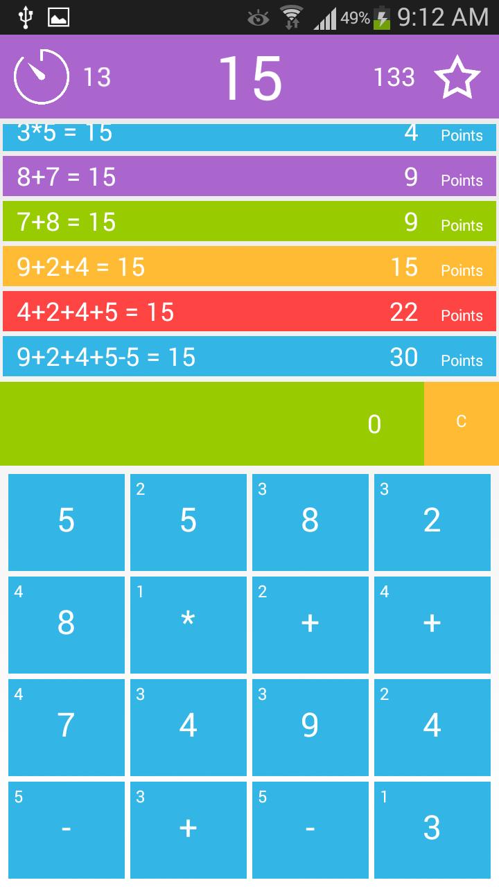 بالنظر إلى لوحة الأرقام والمشغلين 4x4 ، فإن الكائن هو العثور على أكبر عدد ممكن من المعادلات في وقت محدود عن طريق اختيار الأرقام. في نهاية كل جولة ، يتم عرض رتبتك ضد اللاعبين الآخرين.