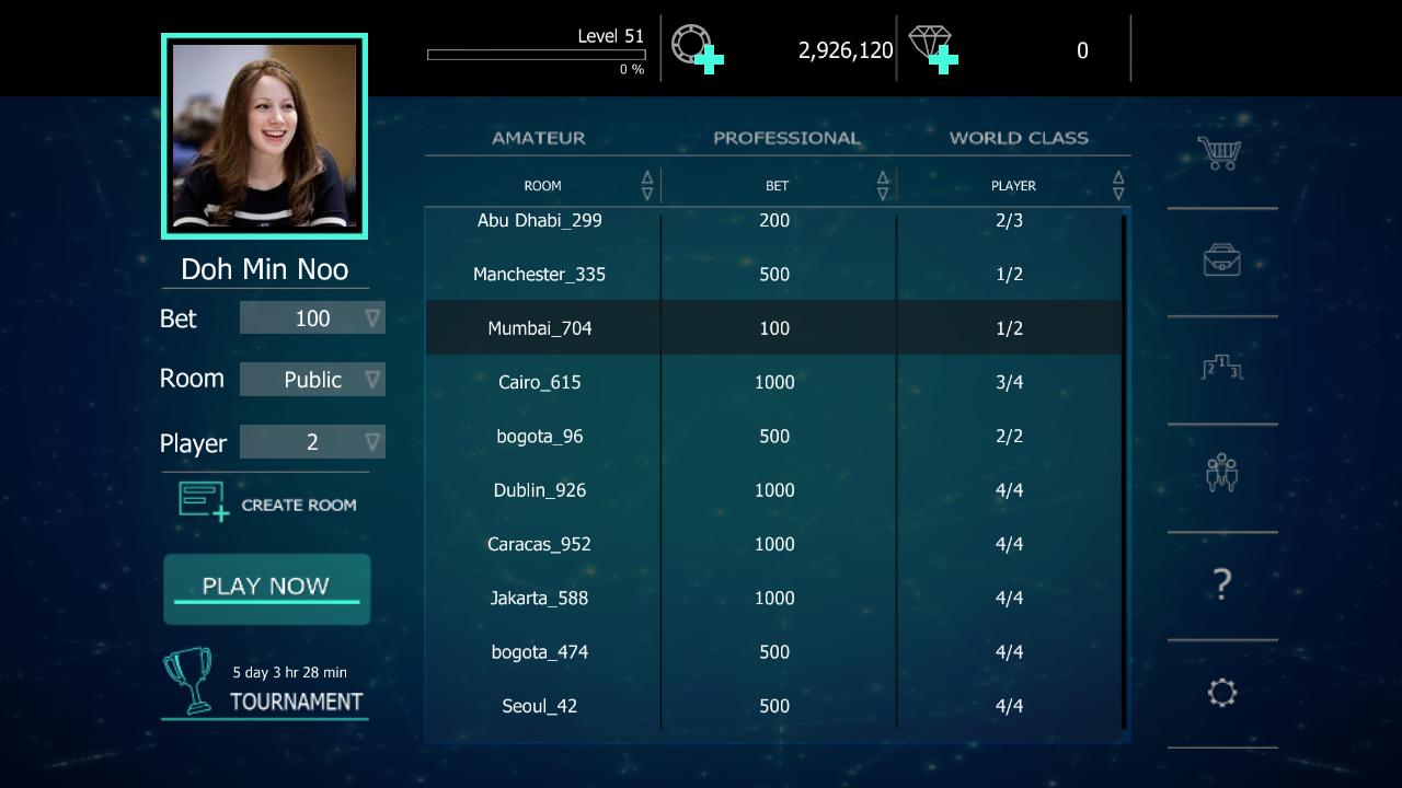 * 3 مستوى للعب (الهواة ، المحترف ، الطراز العالمي)