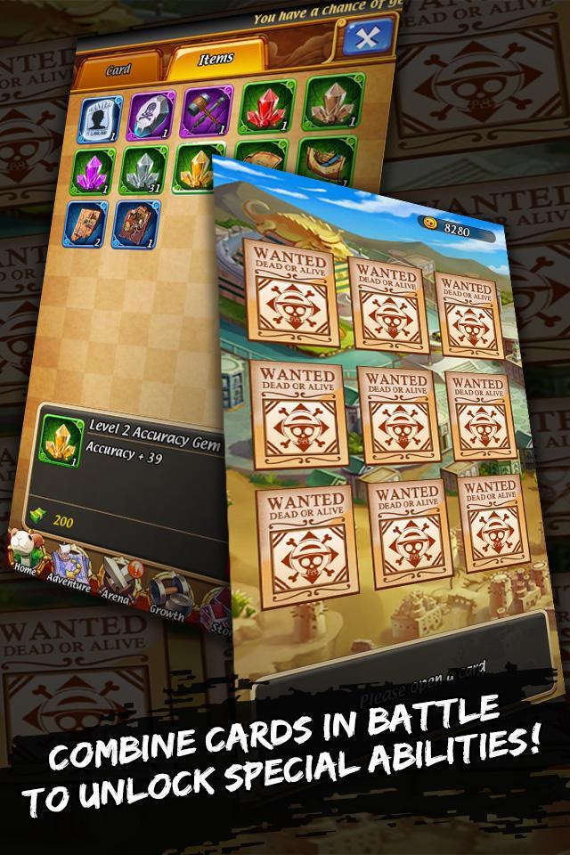 هذه لعبة بطاقات تعتمد على السترة ذات 6 فتحات. تحتوي اللعبة على العديد من أساليب وأحداث اللعبة المثيرة ، وهناك مجموعة متنوعة من البطاقات للاعبين لجمع ودمج وتدريب. ستتاح للاعبين الفرصة للعب مع القراصنة المعروفين ويسترجعون القصص الكلاسيكية.