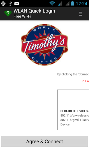 Vereinfachtes WiFi -Hotspot -Login. Ein Klick, um Begriffe zu akzeptieren und sich anzumelden.