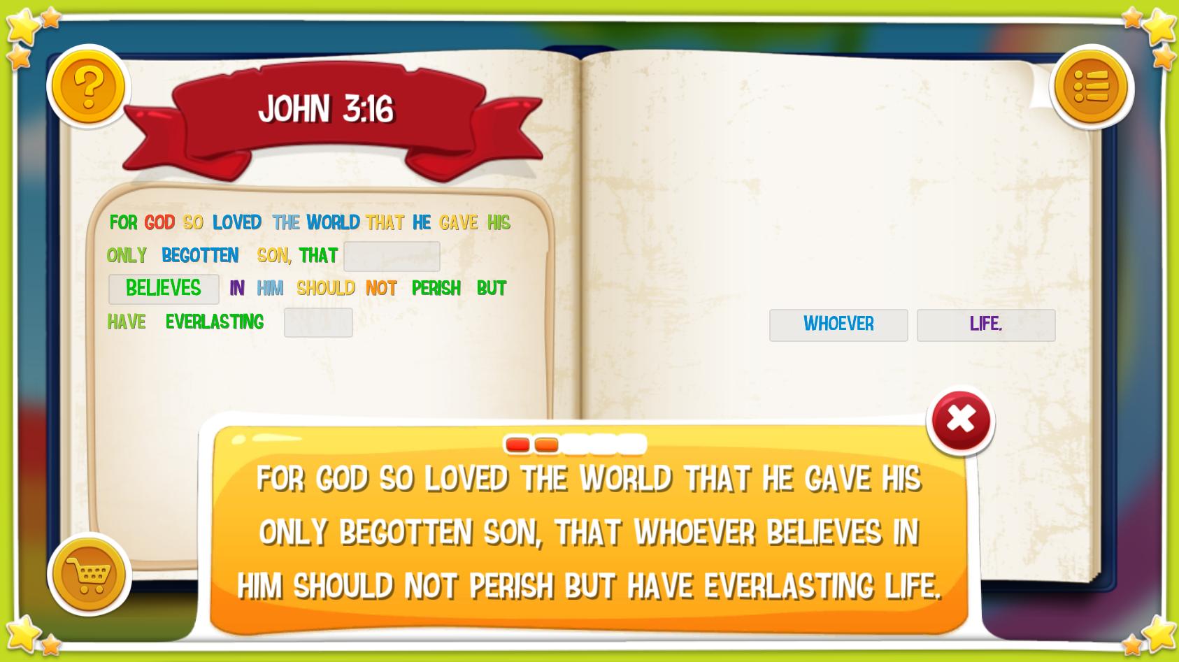 Ist ein Spiel für Kinder und ihre Eltern, die Bibelverse lernen wollen