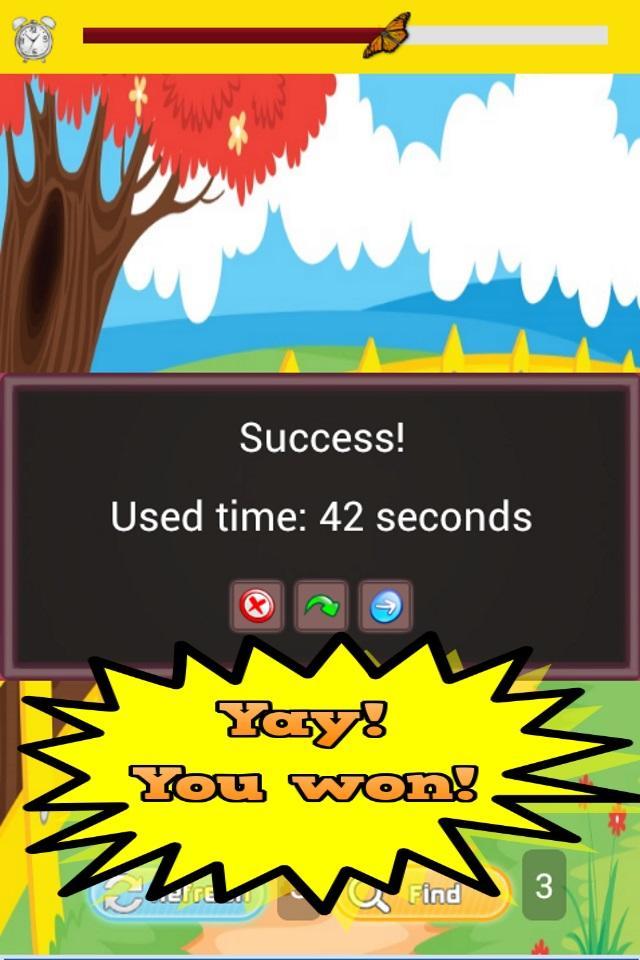 Butterfly Matching Game ist ein zeitgesteuertes Drei -Runde -Matching -Spiel mit verschiedenen Schmetterlingen. Es ist aufgrund der benutzerfreundlichen interaktiven Spielboards für die zweitliegenden und insbesondere für App-Benutzer für App-Benutzer ausgelegt. Die erste Runde im Butterfly Matching Game beträgt 100 Sekunden und jede aufeinanderfolgende Runde ist 20 Sekunden weniger, so dass jede Runde etwas schwieriger ist.