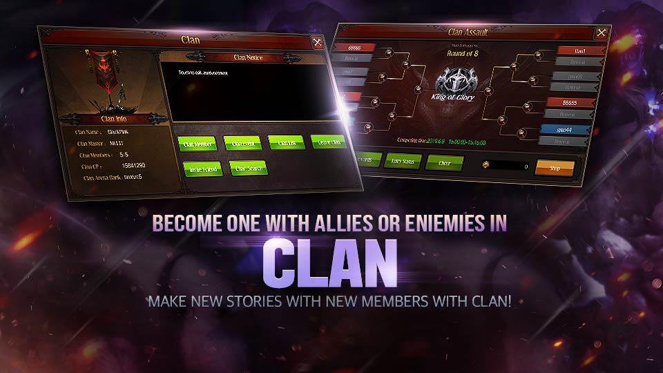 Eine neue Arena-Bühne, um die Kameradschaft unter den Clan-Mitgliedern auf die Probe zu stellen! Beginnen Sie im Clan-Arena-Spiel Ihre MMU.ORPG-Reise und besiegen Sie Clans anderer Herkunft.