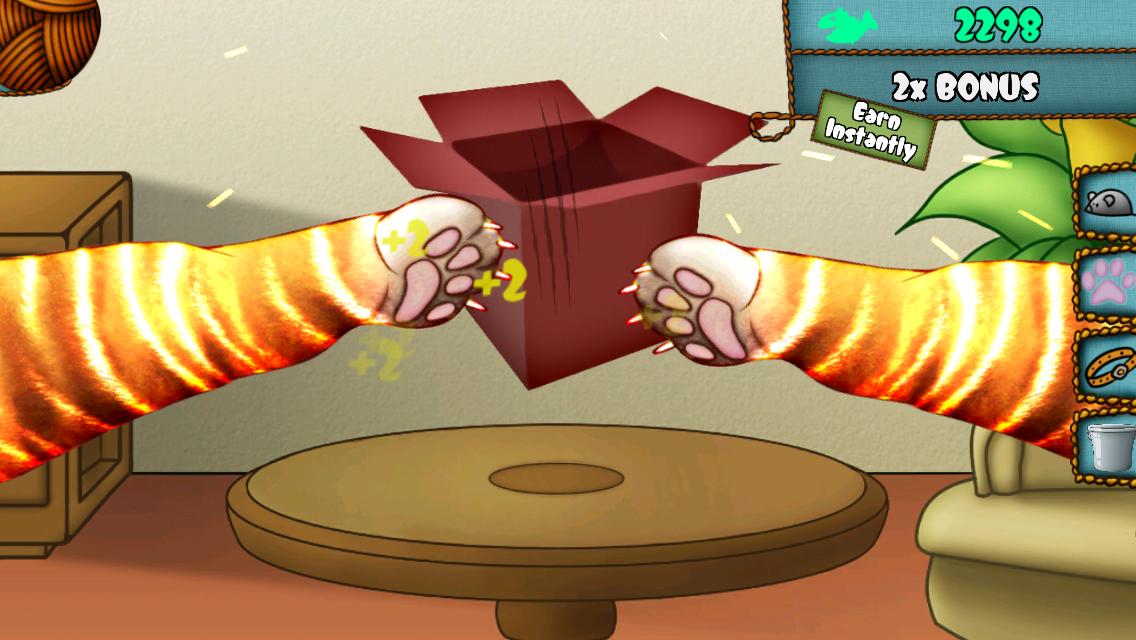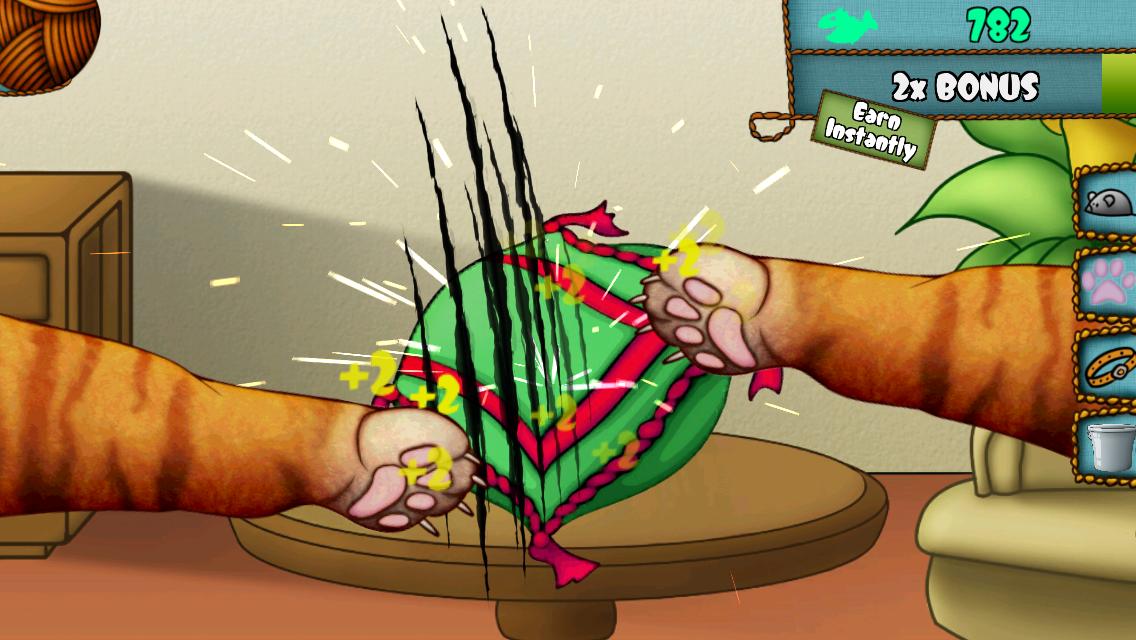 Nun, FRISKY CAT steckt Sie in die Rolle einer Katze und Ihre einzige Aufgabe ist es, Ihre Katzenpfoten so zu genießen, wie Sie möchten, während Sie alle Hausmöbel und Dekorationen Chaos anrichten! Und holen Sie sich jede Menge Fische, während Sie das tun, was Katzen am besten können! Kein Kissen oder Socken ist vor Ihren schnellen Katzenpfoten sicher.