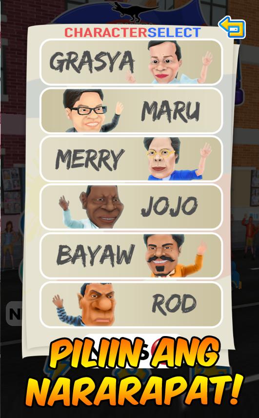 Ein lustiges politisches Satire -Spiel mit der Ähnlichkeit der philippinischen Präsidentschaftskandidaten 2016 nämlich: