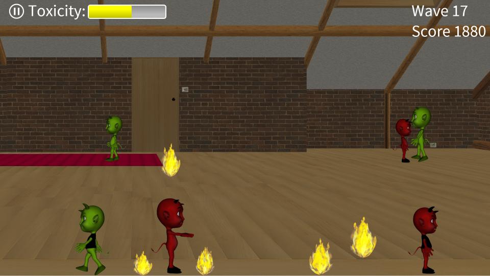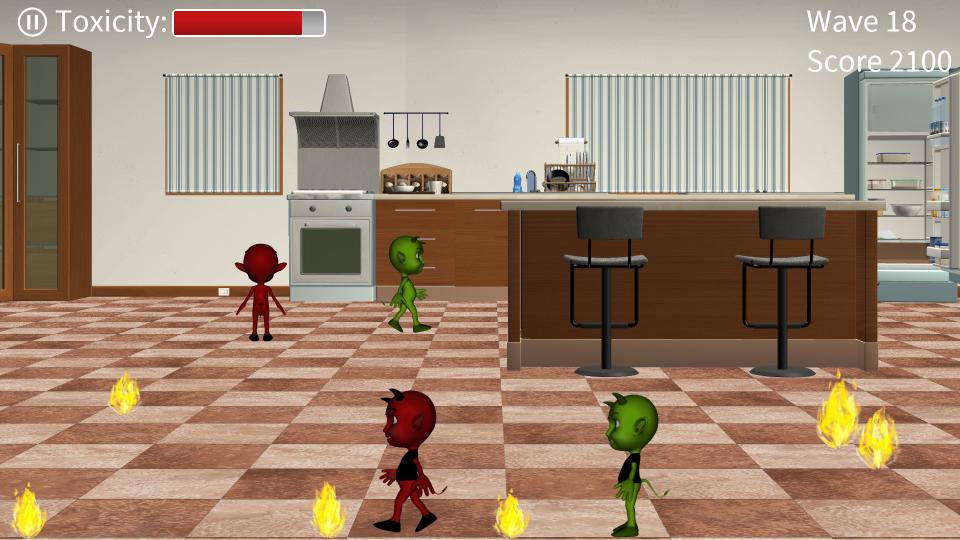Die Hauptidee ist einfach, diese gruseligen kleinen Teufel haben einen schlechten Schwefelgeruch und sie wollen Ihr Zuhause in Brand setzen, ja, sie wollen Ihr Haus niederbrennen! Zum Glück hassen sie heiliges Wasser. Vergessen Sie nicht, alle Feuer zu löschen; Der Feuerrauch und der Schwefelgeruch erhöhen die Toxizität im Raum und er bringt Sie runter.