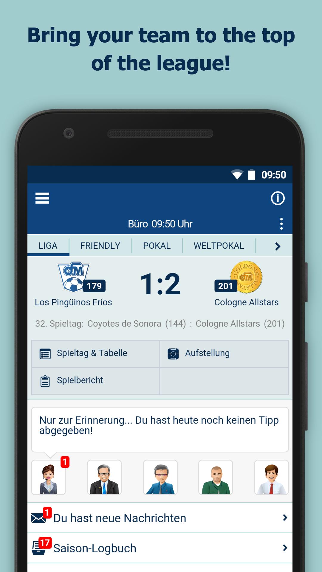 Jeder Tag ist Match Day - 365 Tage im Jahr! Mit über drei Millionen Spielern weltweit ist der Online -Fußballmanager ( OFM ) , eines der erfolgreichsten Fußballmanagerspiele, endlich als App erhältlich. Das Spiel kann mit sehr wenig täglichen Anstrengung gespielt werden. Stellen Sie sich täglich gegen Gegner in bis zu vier Spielen an und führen Sie Ihr Team zum Erfolg. Entwickeln Sie Ihren Verein von Grund auf und beginnen Sie Ihren unaufhaltsamen Marsch von Sunday League Football bis zum obersten Flug.