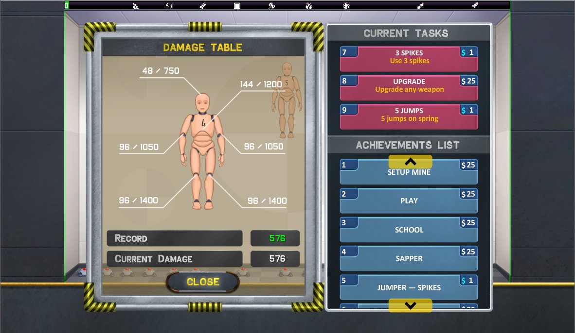 Der zweite Teil von Ragdoll Achievement . Weitere Gegenstände, um die Testpuppe in die Luft zu jagen.
