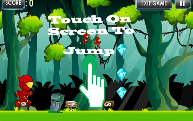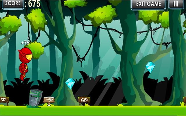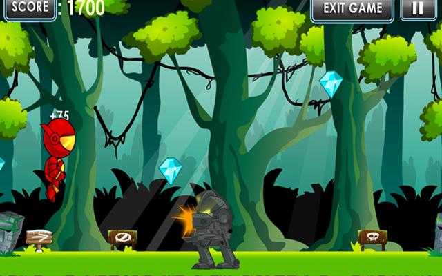 Die Roboter rennen und springen, um Diamanten über den Automat zu sammeln, um einen Zerstörer zu halten, der auf dem Weg zu einer Zunahme von Spezialmächten und Bomben verfügt, um Hindernisse zu zerstören. Alle Entfernungen führen die Robot Runs und springen, um die meisten Punkte zu erhalten.