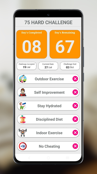 75 Desafío duro: rastreador de fitness y autodisciplina