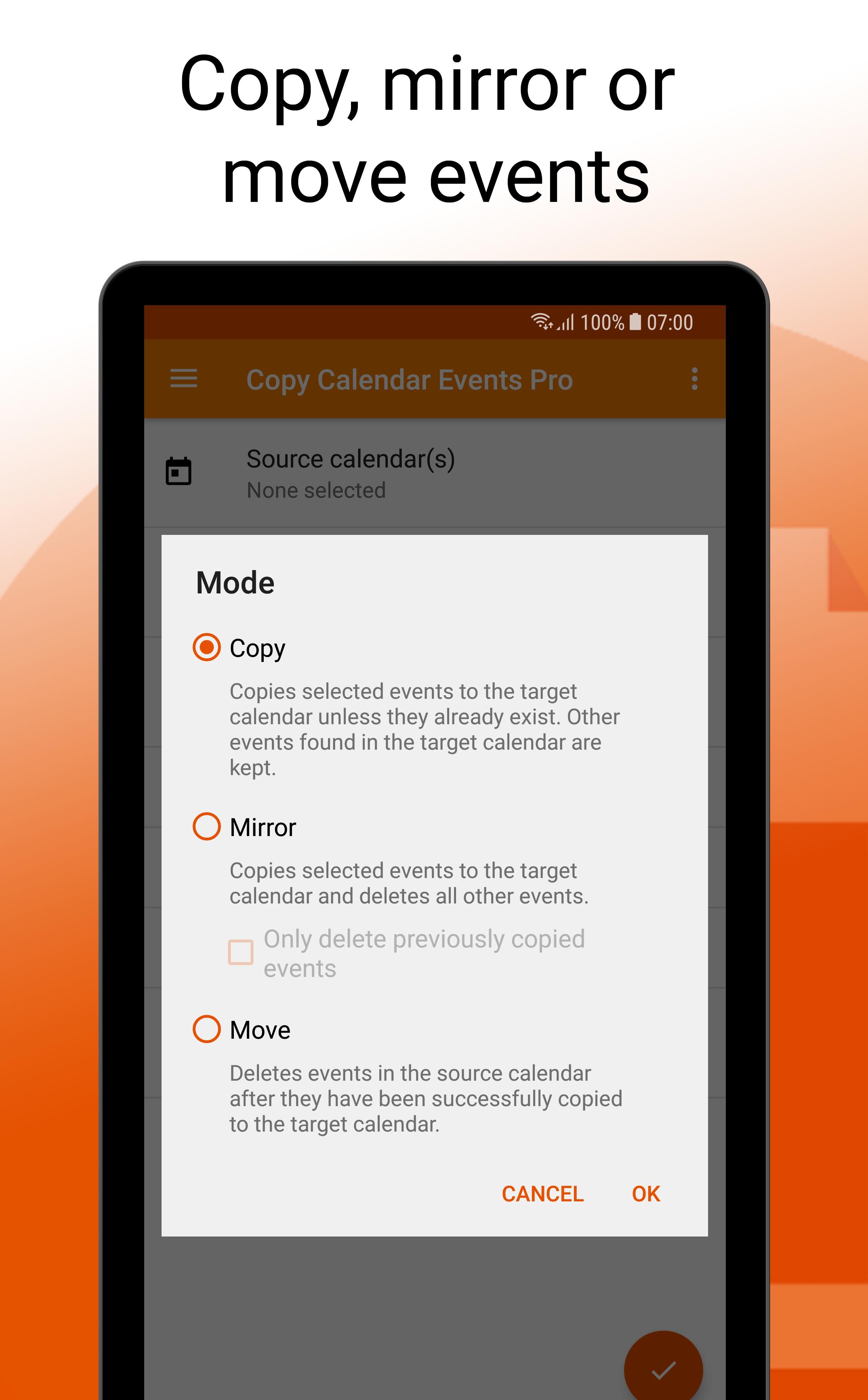 Copy Calendar Events entre sus cuentas calendario directamente en el dispositivo.