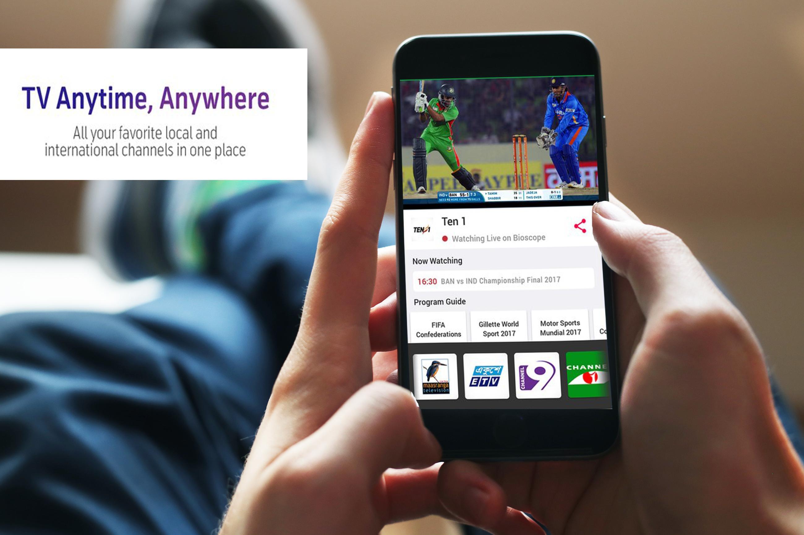 Bioscope es el primer portal en línea de la nación en brindarle canales de televisión en vivo en su teléfono inteligente y escritorio. Disfrute de la serie de televisión en línea rápida, en línea, episodios especiales, así como películas de Bangla de Top Chart. Bioscope proporciona transmisiones deportivas en vivo con puntajes y últimas actualizaciones. ¡Relájate y sigue transmitiendo con un toque de bangla!