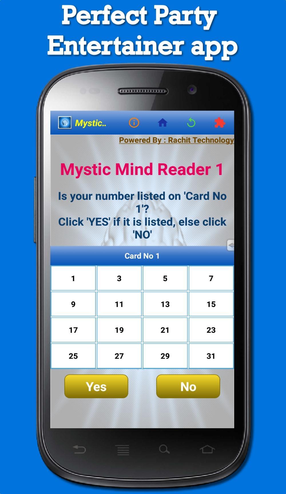 Prepárese para algunos trucos de lectura impresionantes y gratuitos en su teléfono. Disfrute de 10 ilusiones únicas: rompecabezas; Puedes jugar solo o con tus amigos. Descargue esta aplicación, ya que es una aplicación de artista de fiesta perfecta. Impresiona a tus amigos y familiares con excelentes trucos de lectura. Mantenga a mano la calculadora si desea aumentar el nivel de dificultad. Garantizamos las tasas de éxito del 100% con cada resultado (si las reglas se siguen correctamente).