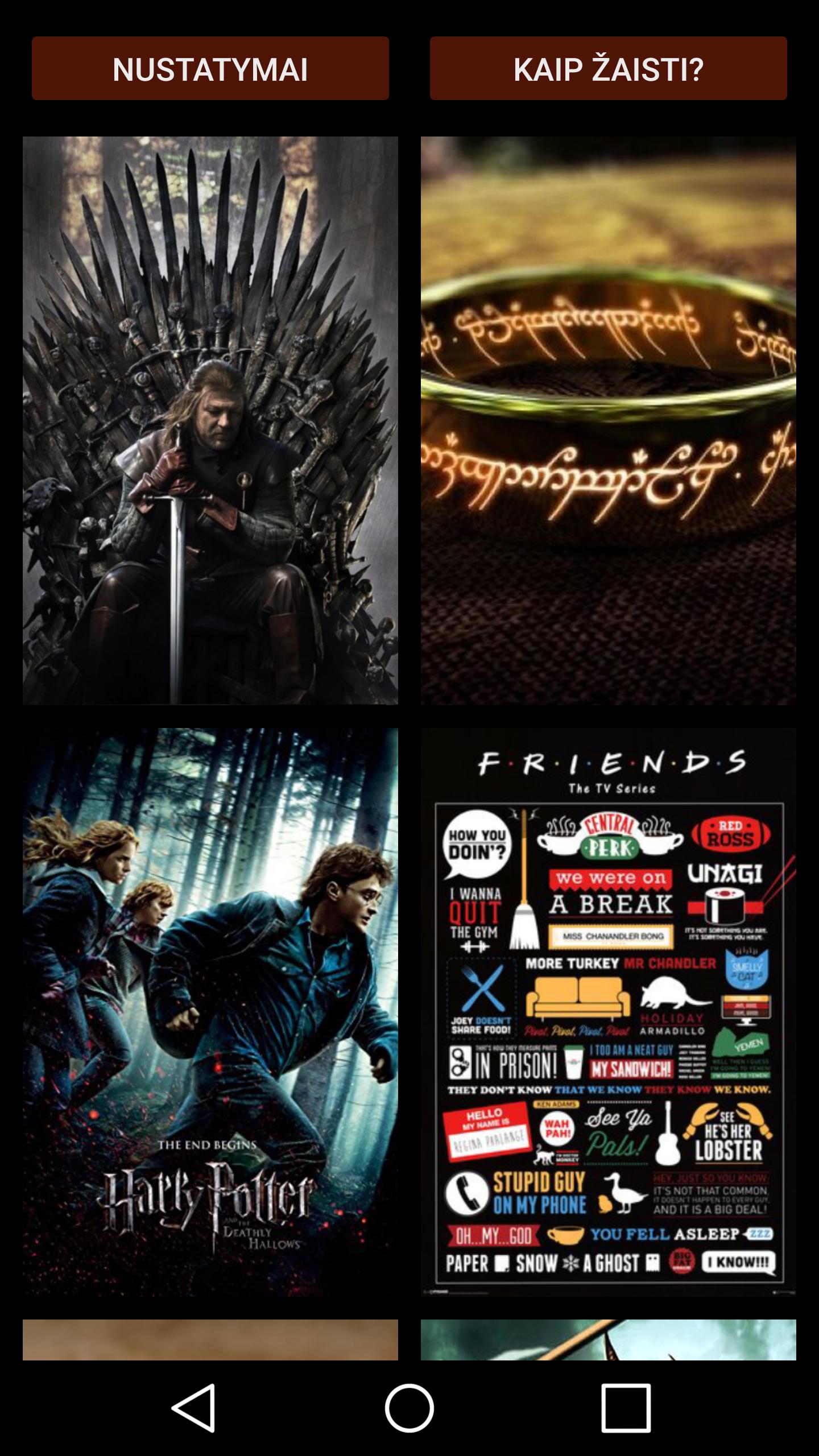 * El juego es 6 (por ahora) mazos de palabras (Juego de tronos, amigos, señor de los anillos ...);