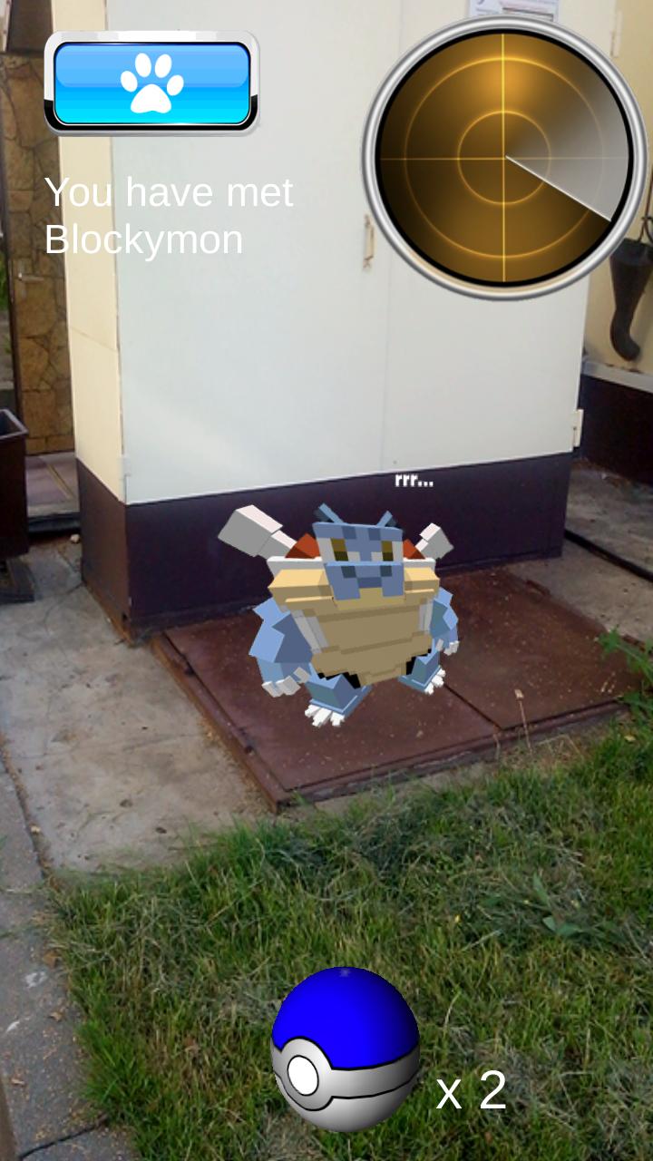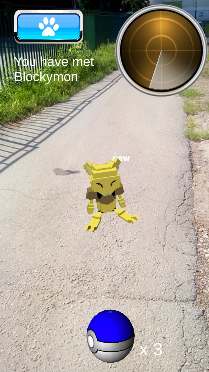 Puede conocer a Pixelmons en los lugares más inesperados, navegar por las calles, parques y cuadrados de la ciudad, e incluso en los edificios dentro de los edificios. También encontrarás Blockyball. Dirija la cámara y mira el radar, él le dirá qué tan cerca del blockymon disfrazado.