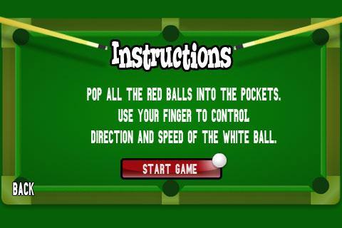 Aplique todas las bolas rojas en los bolsillos. Use su dedo para controlar la dirección y la velocidad de la bola blanca.